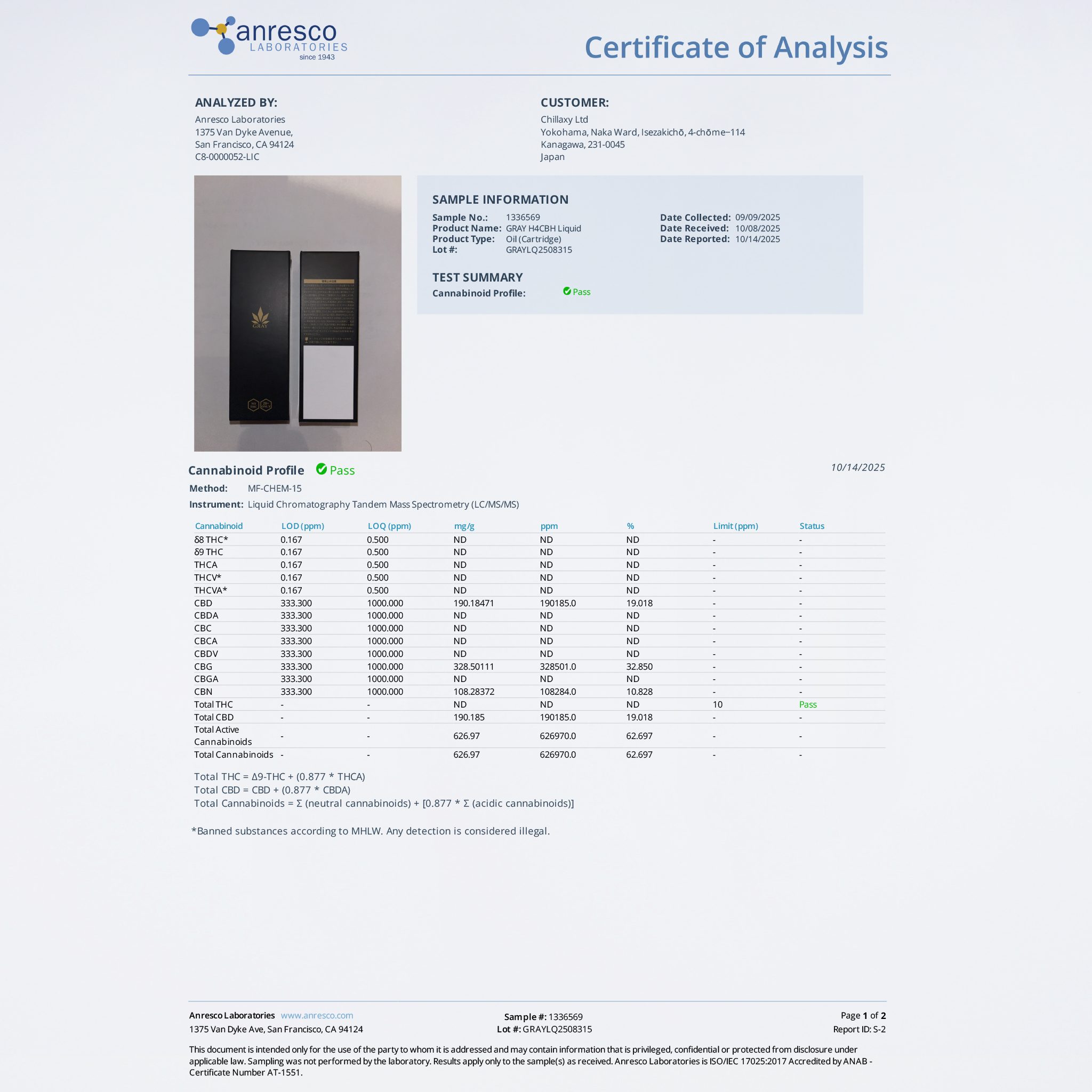 本リキッドは、H4CBH及び複数のカンナビノイドを使用したGRAYオリジナルブレンドです。